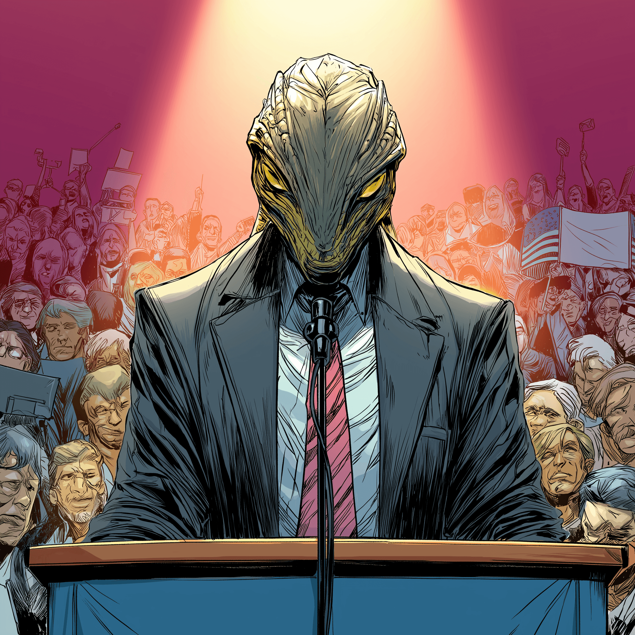 Government Characters get +2 Power. Once per turn, you may "debunk" an opponent's Evidence card.